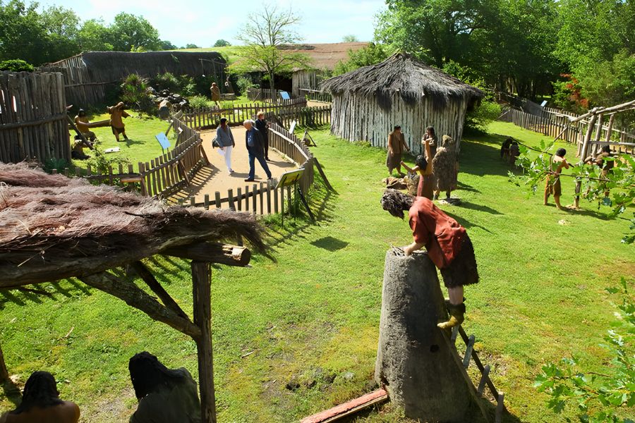 Après les dinosaures, Préhisto Dino Parc fait le lien avec l’évolution de l’homme, en suivant une chronologie “du Big Bang au Néolithique”. Sur le sentier, vous marchez sur les traces des premiers hominidés (de l’Australopithèque à l’Homme de Néandertal et à l’Homme de Cro-Magnon) jusqu’à l’arrivée dans un village néolithique entièrement reconstitué. L’ensemble est pensé pour apprendre en se promenant, avec des repères clairs, des scènes et environ 150 représentations grandeur nature, le tout porté par une ambiance sonore immersive qui rend la visite vraiment vivante pour les enfants comme pour les adultes.