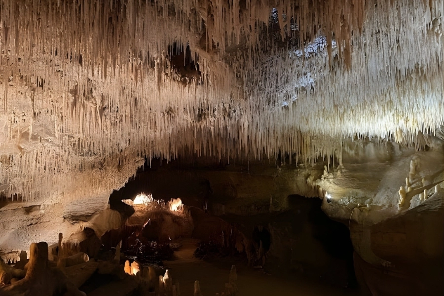 Les Grottes de Cougnac mêlent grotte minérale spectaculaire et grotte ornée : peintures préhistoriques, stalactites, visite guidée près Gourdon.