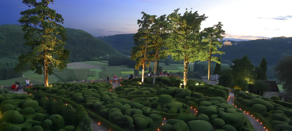 Les Jardins de Marqueyssac offrent une promenade romantique parmi buis sculptés, belvédères spectaculaires, falaises, panoramas grandioses sur la Dordogne.