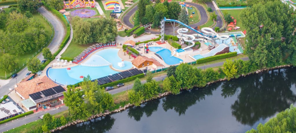 Quercyland à Souillac : piscines chauffées, toboggans, pataugeoires, structures gonflables, accrobranche et karting à pédales, journée familiale au bord Dordogne.