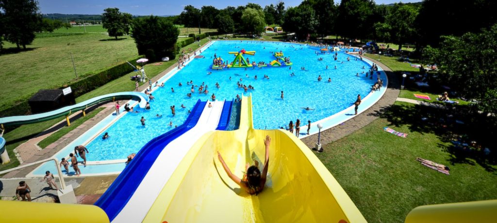 Le parc aquatique La Saule à Bétaille propose 2 500 m² de baignade surveillée, toboggans géants, jeux gonflables, snack familial.